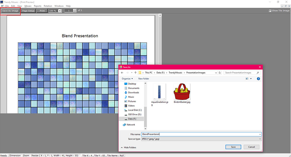 Trendy Mosaic Allows you to save your every Blend creation as an Image which in turn can be used to show up to your clients.